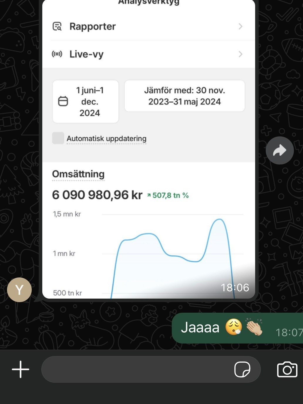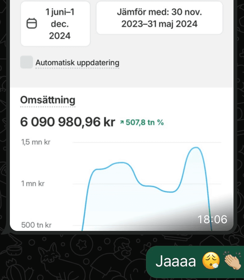Kort därefter startade jag min andra e-handel. Den här gången kändes allt annorlunda. Jag gick in med en helt annan förståelse för vad som faktiskt spelar roll, och en större trygghet i mina beslut. Jag visste vilka misstag som ofta kostar mest tid och energi, och vad som behöver fungera från början för att skapa något hållbart. Precis som tidigare flyttade jag in på lagret under perioder och arbetade intensivt för att bygga upp verksamheten igen. Skillnaden nu var att mycket föll på plats snabbare. Resultaten kom tidigt, men det som betydde mest var känslan av lugn — att förstå varför saker fungerade och att kunna fatta beslut utan samma osäkerhet som tidigare. Det var då jag började inse att det inte handlade om tur eller rätt timing. Samma mönster började visa sig igen. Sättet att arbeta, strukturen och besluten gav liknande resultat en gång till. Jag förstod att det inte bara var en lyckad resa, utan att jag hade hittat ett arbetssätt och en modell som faktiskt gick att upprepa.