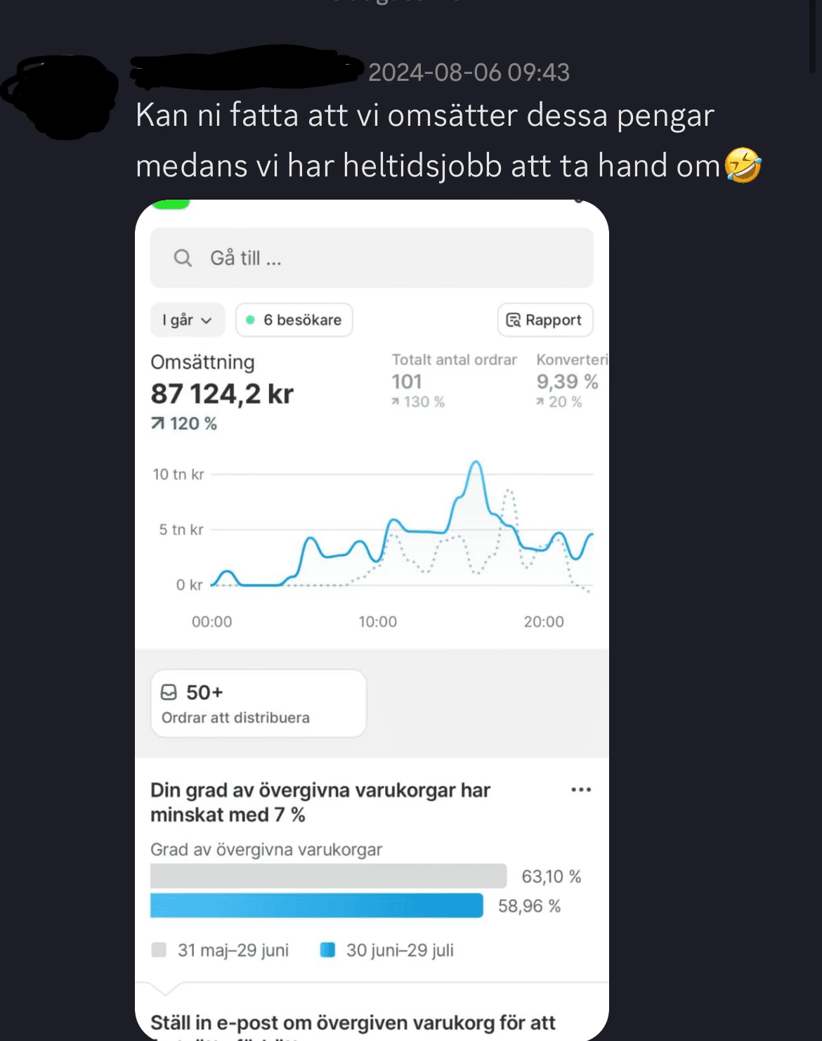 Det var många frågor och väldigt få svar. Men för första gången kände jag att jag hade hittat något som fungerade för mig. Ett driv växte fram som jag inte känt tidigare, och jag gick in helhjärtat. Jag jobbade dag och natt och bodde på lagret för att få allt att fungera. Det här bolaget blev inte bara ett projekt — det blev hela mitt fokus och min möjlighet att bygga något eget.