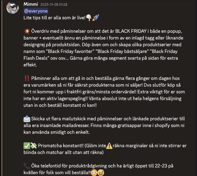 Efter den andra resan började fler och fler höra av sig. Personer som följt resan, eller själva försökte bygga e-handel, ställde ofta samma frågor som jag en gång hade haft. I början handlade det bara om att dela med mig av sådant jag själv hade önskat att någon förklarat för mig från början — hur man skapar struktur, förstår sina marginaler och bygger något som faktiskt håller över tid.
